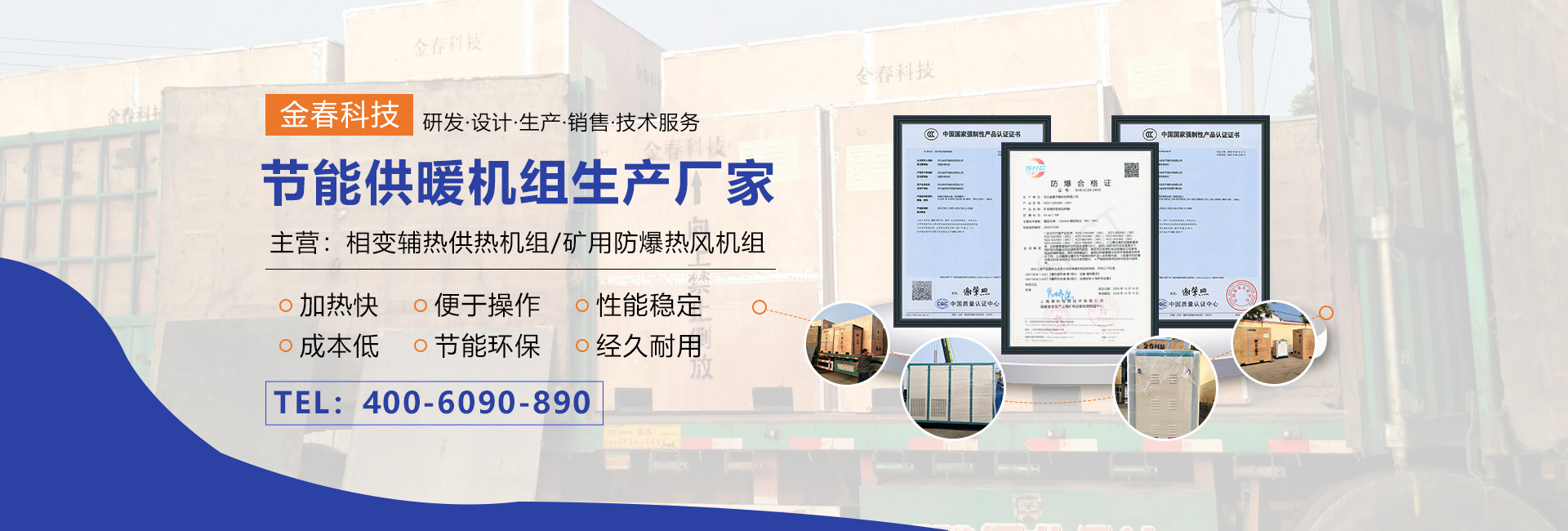 本公司專業(yè)生產(chǎn)相變輔熱供熱機組、礦用防爆熱風(fēng)機組,可代替燃煤、燃油、燃?xì)忮仩t,運行成本低,具有加熱快、熱效率高、便于操作,節(jié)能環(huán)保等特點,是新一代理想的環(huán)保節(jié)能產(chǎn)品。